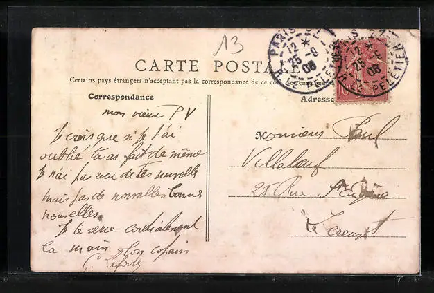 alte Ansichtskarte, gelaufen 1908, Stempelspur, guter Zustand
