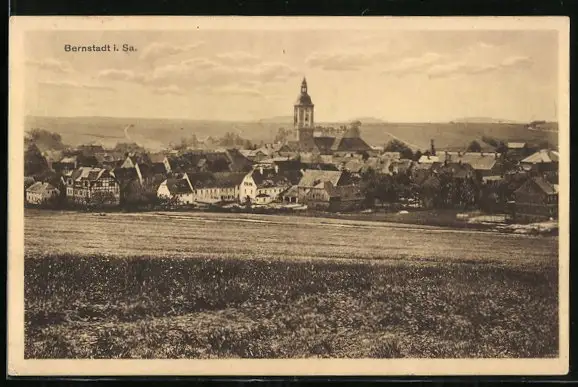 AK Bernstadt i. Sa., Ortsansicht von einer Anhöhe aus