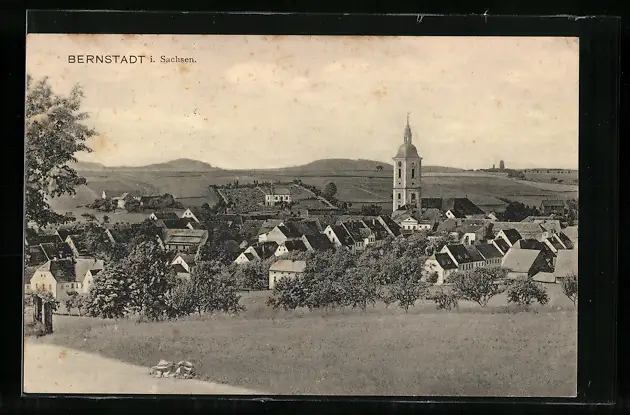 AK Bernstadt i. Sachsen, Ortsansicht von einem Berg aus