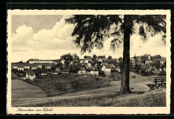 AK Bernstein am Wald, Ortsansicht mit Baum in Vordergrund
