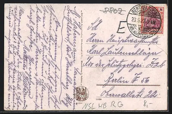 gelaufen 1922, Eckknick li. unten, Bugspur li. mittig, guter Zustand