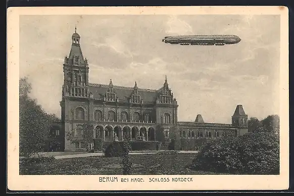 AK Berum, Zeppelin über dem Schloss Nordeck