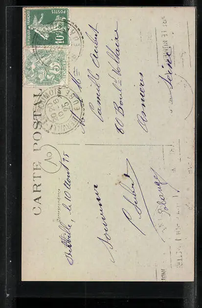 Personenbezogene Daten auf der Rückseite der Karte wurden durch blauen Textmarker unkenntlich gemacht. Die blauen Stellen sind auf die Vorderseite durchgeweicht und wirken sich negativ auf das Postkartenfoto aus
