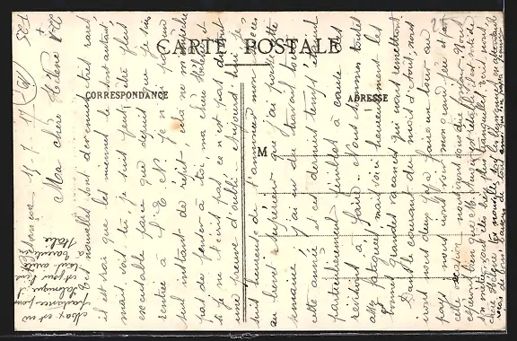 Personenbezogene Daten auf der Rückseite der Karte wurden durch blauen Textmarker unkenntlich gemacht. Die blauen Stellen sind auf die Vorderseite durchgeweicht und wirken sich negativ auf das Postkartenfoto aus