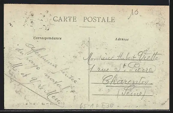 Personenbezogene Daten auf der Rückseite der Karte wurden durch blauen Textmarker unkenntlich gemacht. Die blauen Stellen sind auf die Vorderseite durchgeweicht und wirken sich negativ auf das Postkartenfoto aus