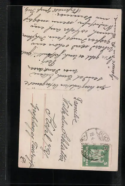 alte Ansichtskarte, gelaufen, Bugspur unten rechts, guter Zustand