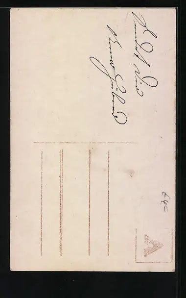 Personenbezogene Daten auf der Rückseite der Karte wurden durch blauen Textmarker unkenntlich gemacht. Die blauen Stellen sind auf die Vorderseite durchgeweicht und wirken sich negativ auf das Postkartenfoto aus