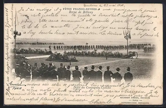 AK Betheny, Fete Franco-Russes, Defile des Compagnies Cyclistes