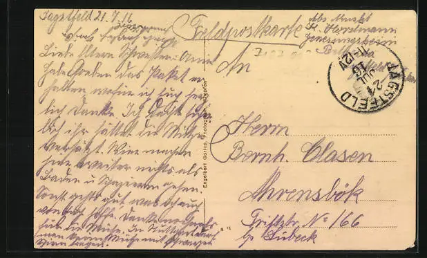 alte Ansichtskarte, gelaufen 1916, Oberflächenschaden, guter Zustand