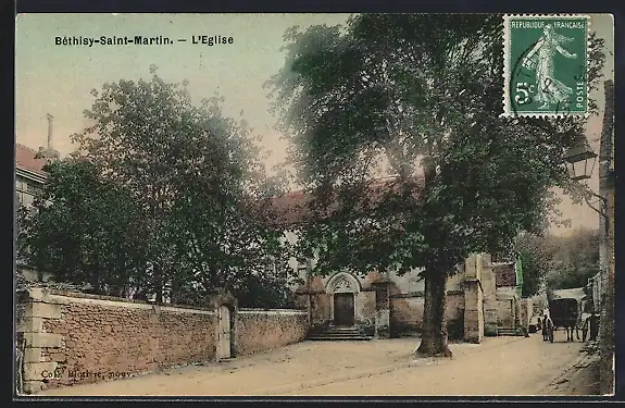 AK Béthisy-Saint-Martin, L`Église et rue avec calèche