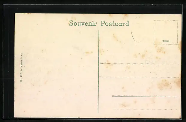 Personenbezogene Daten auf der Rückseite der Karte wurden durch blauen Textmarker unkenntlich gemacht. Die blauen Stellen sind auf die Vorderseite durchgeweicht und wirken sich negativ auf das Postkartenfoto aus