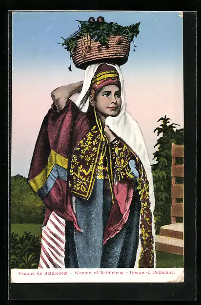 AK Bethlehem, Junge Frau trägt Korb auf ihrem Kopf