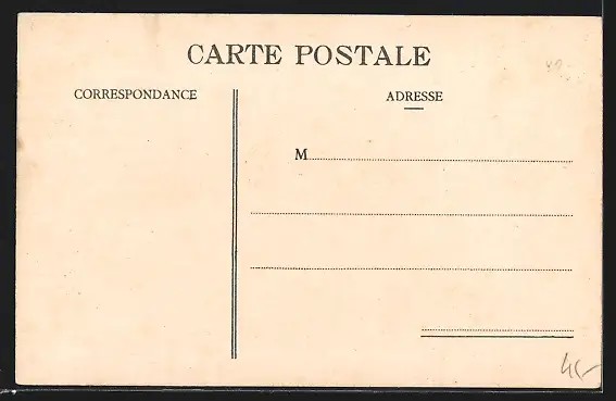 Personenbezogene Daten auf der Rückseite der Karte wurden durch blauen Textmarker unkenntlich gemacht. Die blauen Stellen sind auf die Vorderseite durchgeweicht und wirken sich negativ auf das Postkartenfoto aus