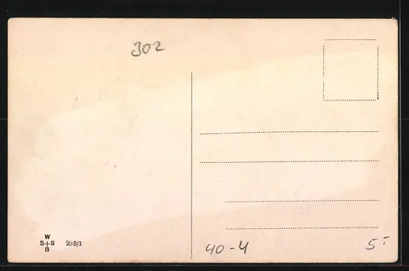 Personenbezogene Daten auf der Rückseite der Karte wurden durch blauen Textmarker unkenntlich gemacht. Die blauen Stellen sind auf die Vorderseite durchgeweicht und wirken sich negativ auf das Postkartenfoto aus