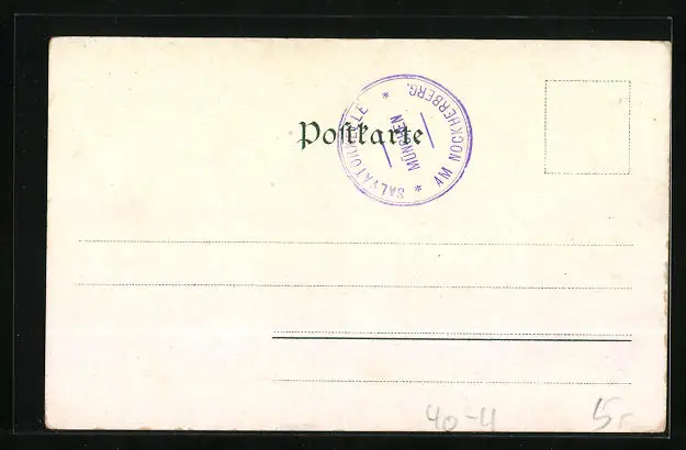 Personenbezogene Daten auf der Rückseite der Karte wurden durch blauen Textmarker unkenntlich gemacht. Die blauen Stellen sind auf die Vorderseite durchgeweicht und wirken sich negativ auf das Postkartenfoto aus
