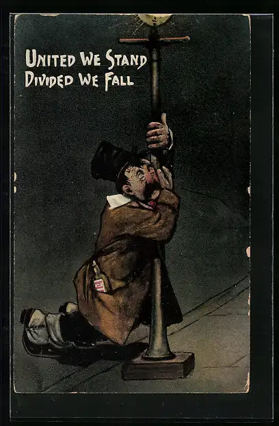 AK Betrunkener Mann mit Zylinder hält sich an einer Laterne fest