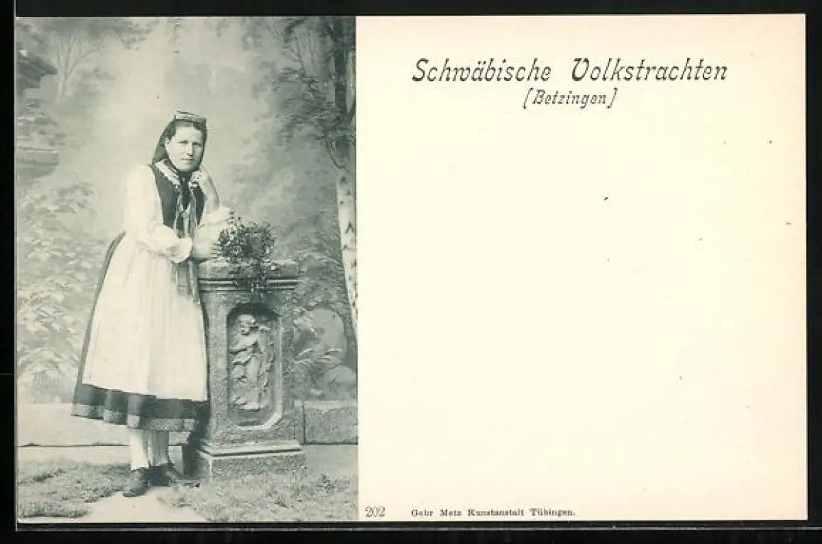 AK Betzingen, Frau in schwäbischer Volkstracht