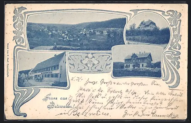AK Betzweiler, Gasthaus z. Hirsch, Ortsansicht