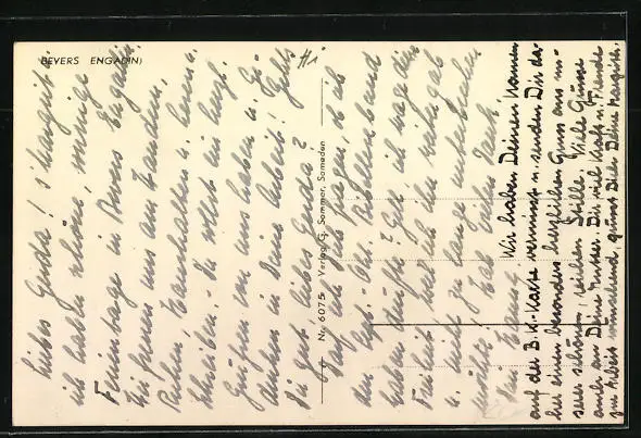 Personenbezogene Daten auf der Rückseite der Karte wurden durch blauen Textmarker unkenntlich gemacht. Die blauen Stellen sind auf die Vorderseite durchgeweicht und wirken sich negativ auf das Postkartenfoto aus