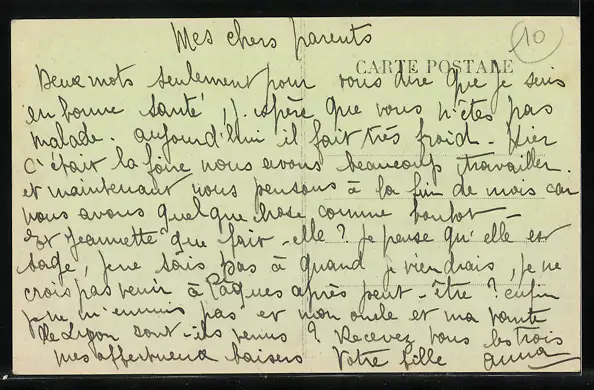 Personenbezogene Daten auf der Rückseite der Karte wurden durch blauen Textmarker unkenntlich gemacht. Die blauen Stellen sind auf die Vorderseite durchgeweicht und wirken sich negativ auf das Postkartenfoto aus