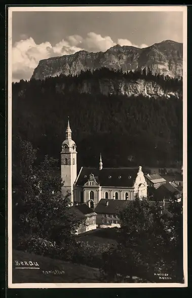 AK Bezau, Blick auf die Kirche vom Berg aus