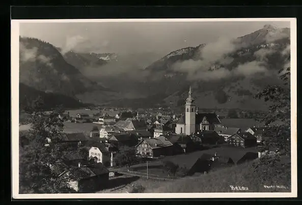 AK Bezau, Totalansicht von einer Anhöhe aus
