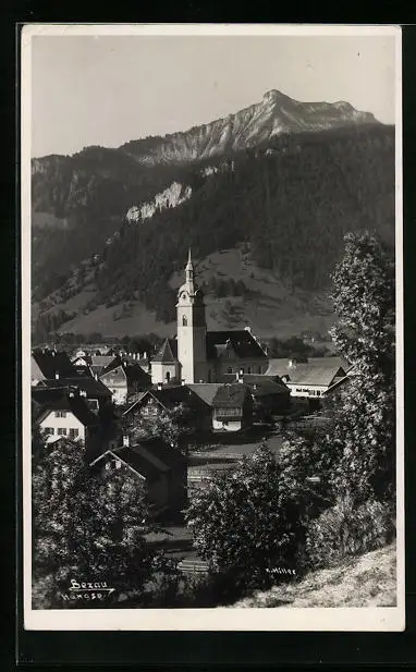AK Bezau i. Bregenzerwald, Ortsansicht mit Berglandschaft