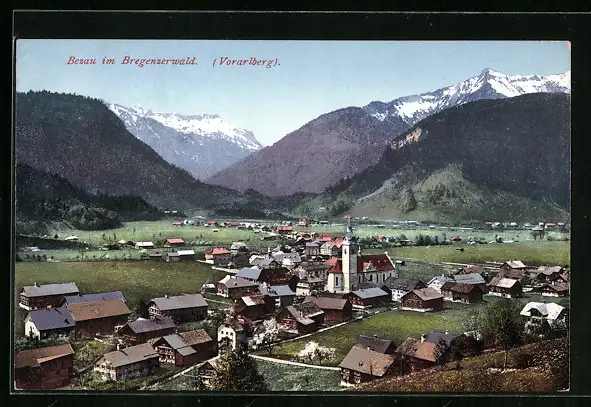 AK Bezau im Bregenzerwald, Teilansicht mit Kirche