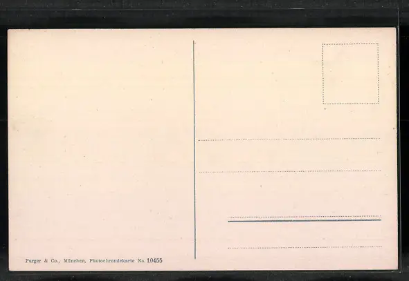 Personenbezogene Daten auf der Rückseite der Karte wurden durch blauen Textmarker unkenntlich gemacht. Die blauen Stellen sind auf die Vorderseite durchgeweicht und wirken sich negativ auf das Postkartenfoto aus