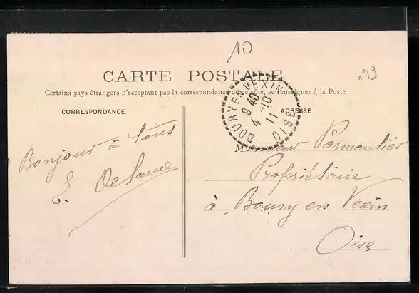 Personenbezogene Daten auf der Rückseite der Karte wurden durch blauen Textmarker unkenntlich gemacht. Die blauen Stellen sind auf die Vorderseite durchgeweicht und wirken sich negativ auf das Postkartenfoto aus