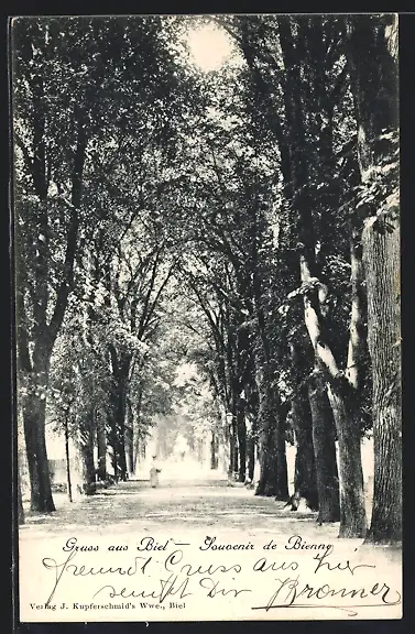 AK Biel, Allee mit Spaziergängern