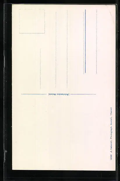 Personenbezogene Daten auf der Rückseite der Karte wurden durch blauen Textmarker unkenntlich gemacht. Die blauen Stellen sind auf die Vorderseite durchgeweicht und wirken sich negativ auf das Postkartenfoto aus