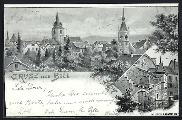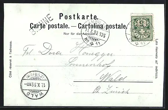 alte Ansichtskarte, gelaufen 1899, linke u. rechte Kante beschnitten