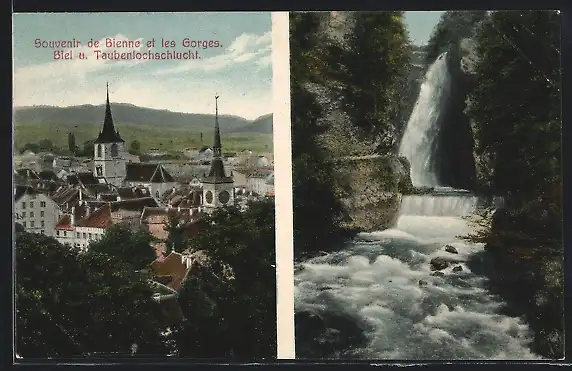 AK Biel, Ortsansicht und die Taubenlochschlucht