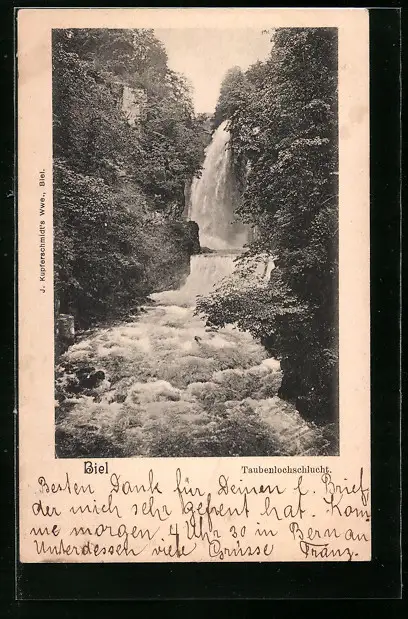 AK Biel, Wasserfall in der Taubenlochschlucht