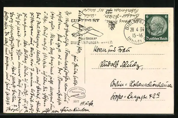 alte Ansichtskarte, gelaufen 1934, Albumspuren, guter Zustand
