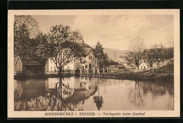 AK Bienenmühle i. Erzgeb., Teichpartie beim Gasthof