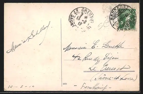 alte Ansichtskarte, gelaufen 1912, Stempelspur, guter Zustand