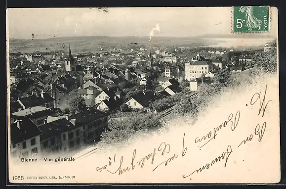 AK Bienne, Vue generale, Totalansicht mit Kirche