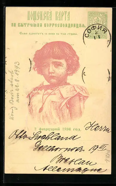 AK Bildnis Prinz Boris von Bulgarien, Ganzsache