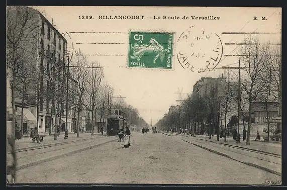 AK Billancourt, La Route de Versailles, Strassenbahn