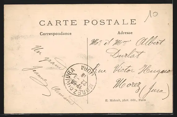 Personenbezogene Daten auf der Rückseite der Karte wurden durch blauen Textmarker unkenntlich gemacht. Die blauen Stellen sind auf die Vorderseite durchgeweicht und wirken sich negativ auf das Postkartenfoto aus