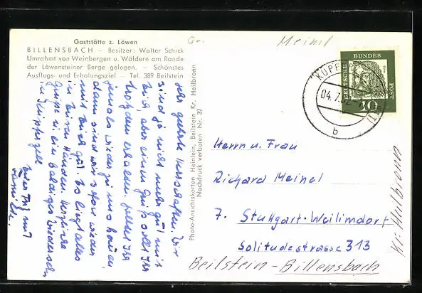 AK Billensbach, Panorama & Gaststätte z. Löwen v. Walter Schick