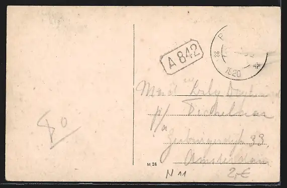 alte Ansichtskarte, gelaufen 1920, Briefmarke entfernt, rückseitig Oberflächenschaden, guter Zustand