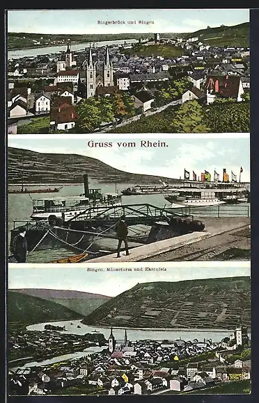 AK Bingen / Rhein, Bingerbrück und Bingen, Partie am Rhein, Dampfer, Bingen, Mäuseturm und Ehrenfels