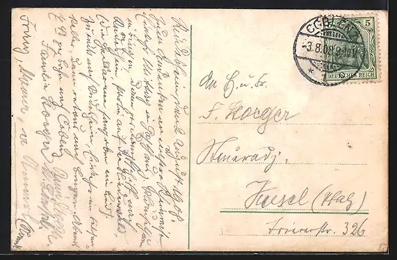 alte Ansichtskarte, gelaufen 1908, Stempelspur, guter Zustand