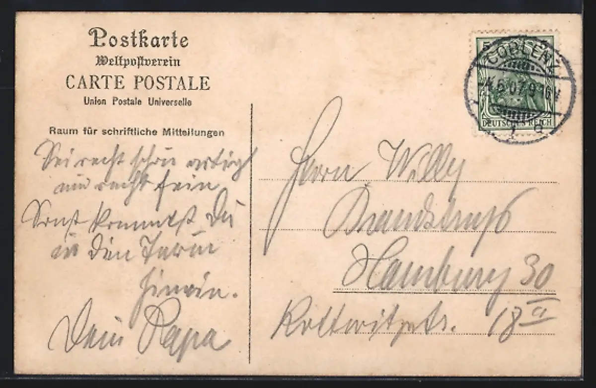alte Ansichtskarte, gelaufen 1907, guter Zustand