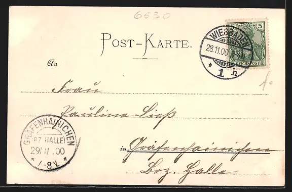 alte Ansichtskarte, gelaufen 1900, guter Zustand