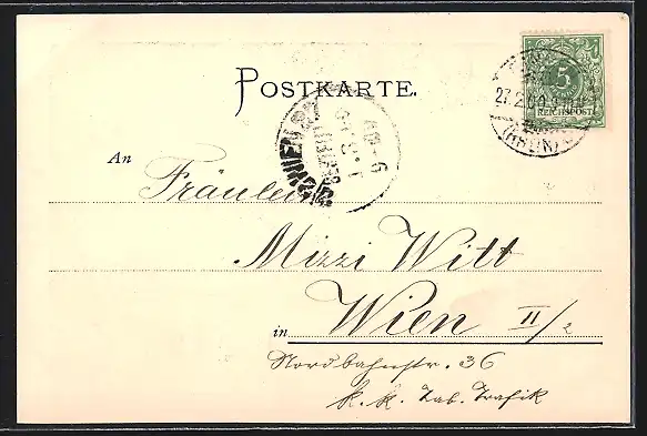 alte Ansichtskarte, gelaufen 1900, Stempelspur, guter Zustand