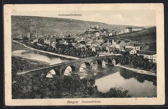 AK Bingen /Rhein, Ortsansicht mit Drususbrücke und Nationaldenkmal